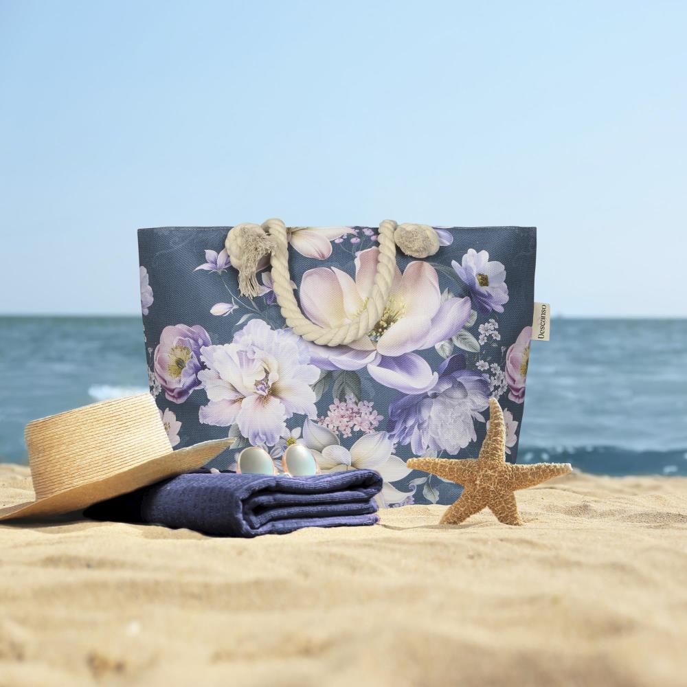 Strandtas Mirery van Descanso is een stijlvolle strandtas met bloemen, uitgevoerd in de kleur petrol. Dankzij het unieke design is deze strandtas een echte eyecatcher op het strand of bij het zwembad. De strandtas is gemaakt van 100% polyester linnen en heeft een naturel gekleurde achterkant. Aan de binnenzijde bevindt zich een handig zijvak en de tas kan volledig worden afgesloten met een ritssluiting - ideaal om je spullen veilig op te bergen. De touwhandvatten zorgen voor een comfortabele grip en geven de tas een zomerse uitstraling. Strandtas van Descanso zijn niet alleen praktisch maar ook modieus. Deze strandtas is perfect voor een zonnige dag aan zee, een picknick in het park of een dagje weg. Dit betreft één strandtas van 43x60 cm. Dit item is Oeko-Tex gecertificeerd (Oeko-Tex Standard 100): vrij van schadelijke stoffen en huidvriendelijk. De strandtas is niet wasbaar.