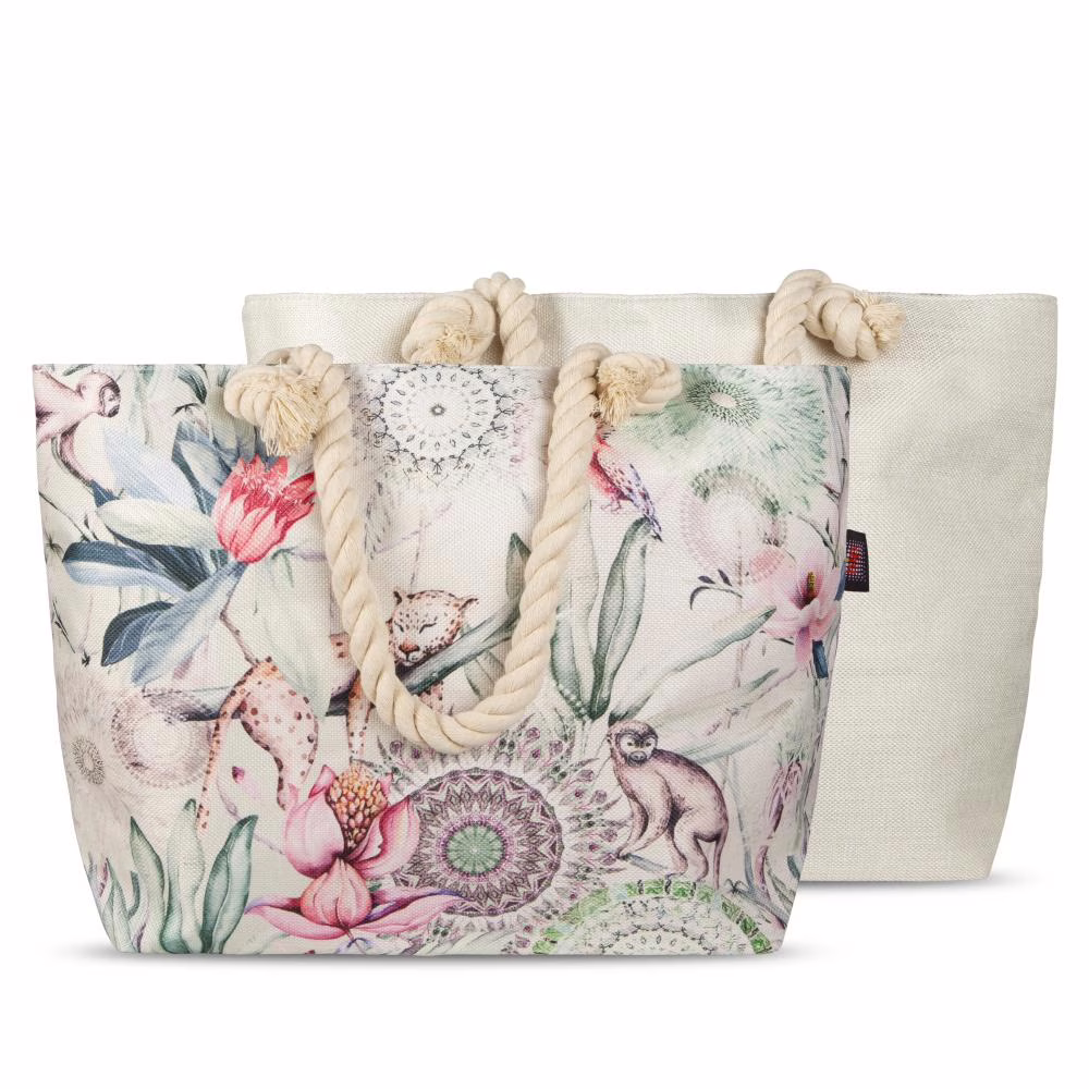 Strandtas wayan van HIP. Deze strandtas met tropische print en mandala's, in de kleur multi, is een echte blikvanger. Een strandtas van HIP is stijlvol, uniek en een echte eyecatcher op het strand.