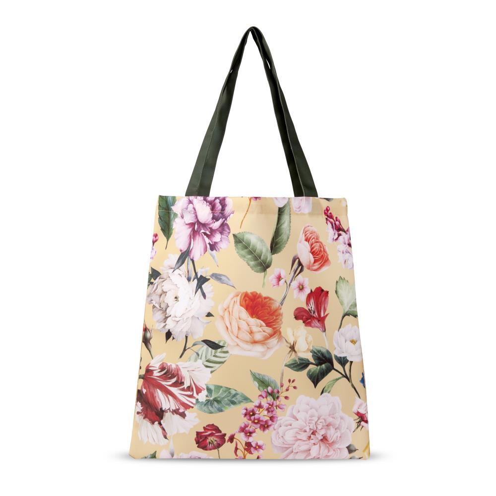 Opvouwbare boodschappentas Fiori van Descanso met bloemen, in de kleur oker, is een shopper die opvalt. Aan de achterkant van een Descanso boodschappentas zit altijd een mooie, bijpassende print. Een Descanso shopper is stijlvol, uniek en een echte eyecatcher in de winkel.
