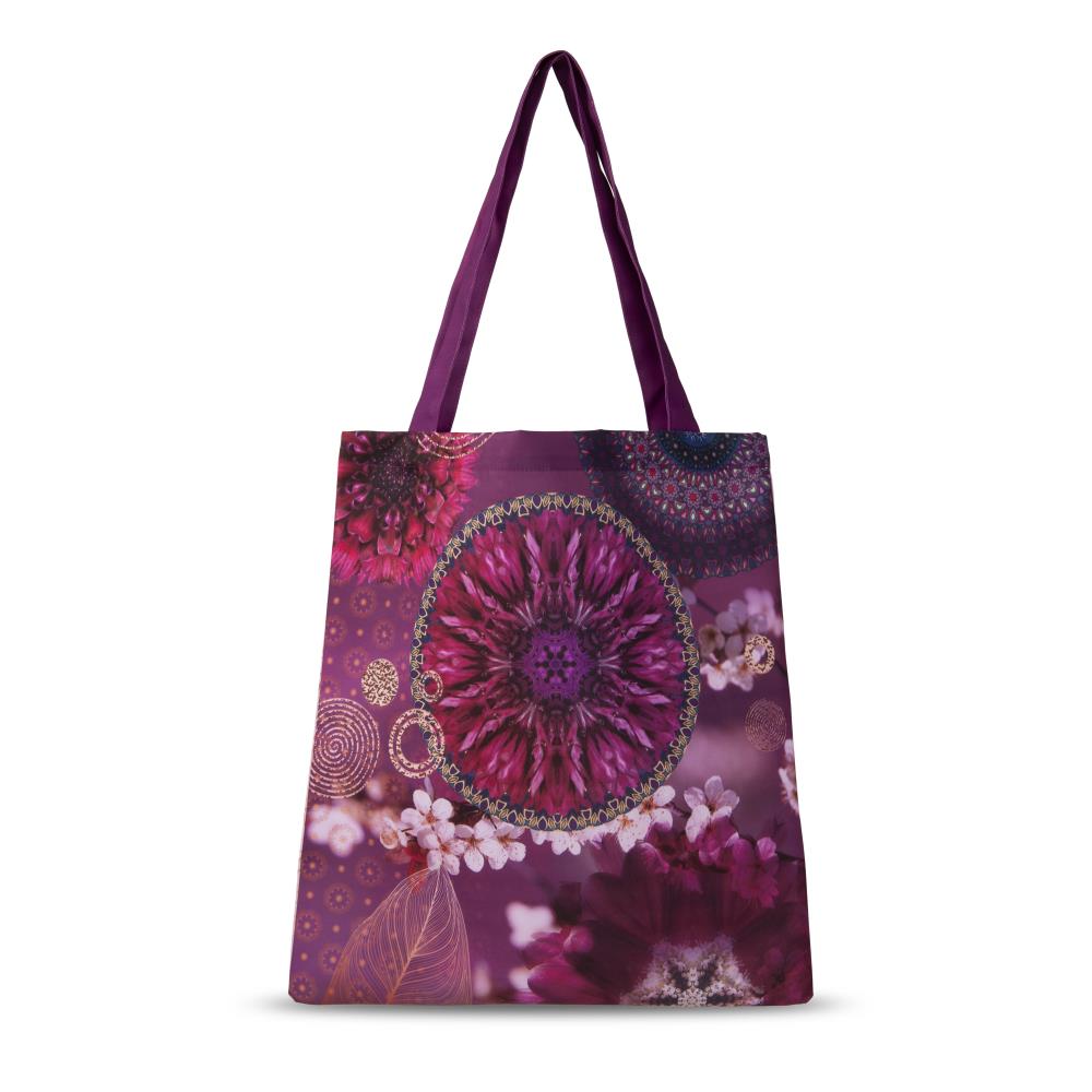 Opvouwbare boodschappentas aluna van HIP. Deze tas met mandala's en bloemen in de kleur multi is een shopper die direct opvalt. Alle boodschappentassen van HIP zijn vrolijk gekleurd en hebben een mandala-print.